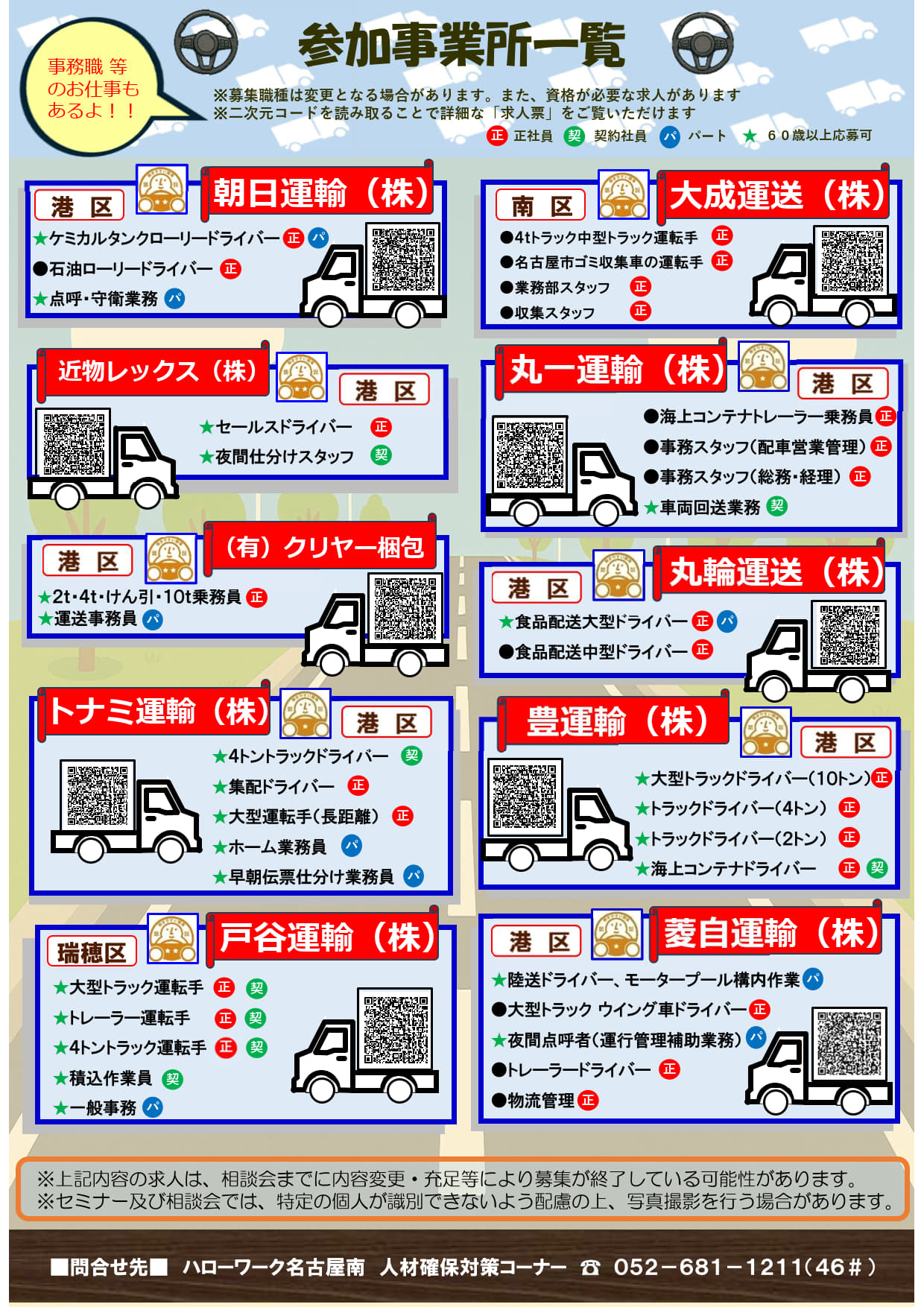 2026年2月12日、働きやすい職場認証取得事業者10社が参加する就職説明会&セミナー・体験会が、一般社団法人愛知県トラック協会・名古屋南公共職業安定所の共催で開催されます。