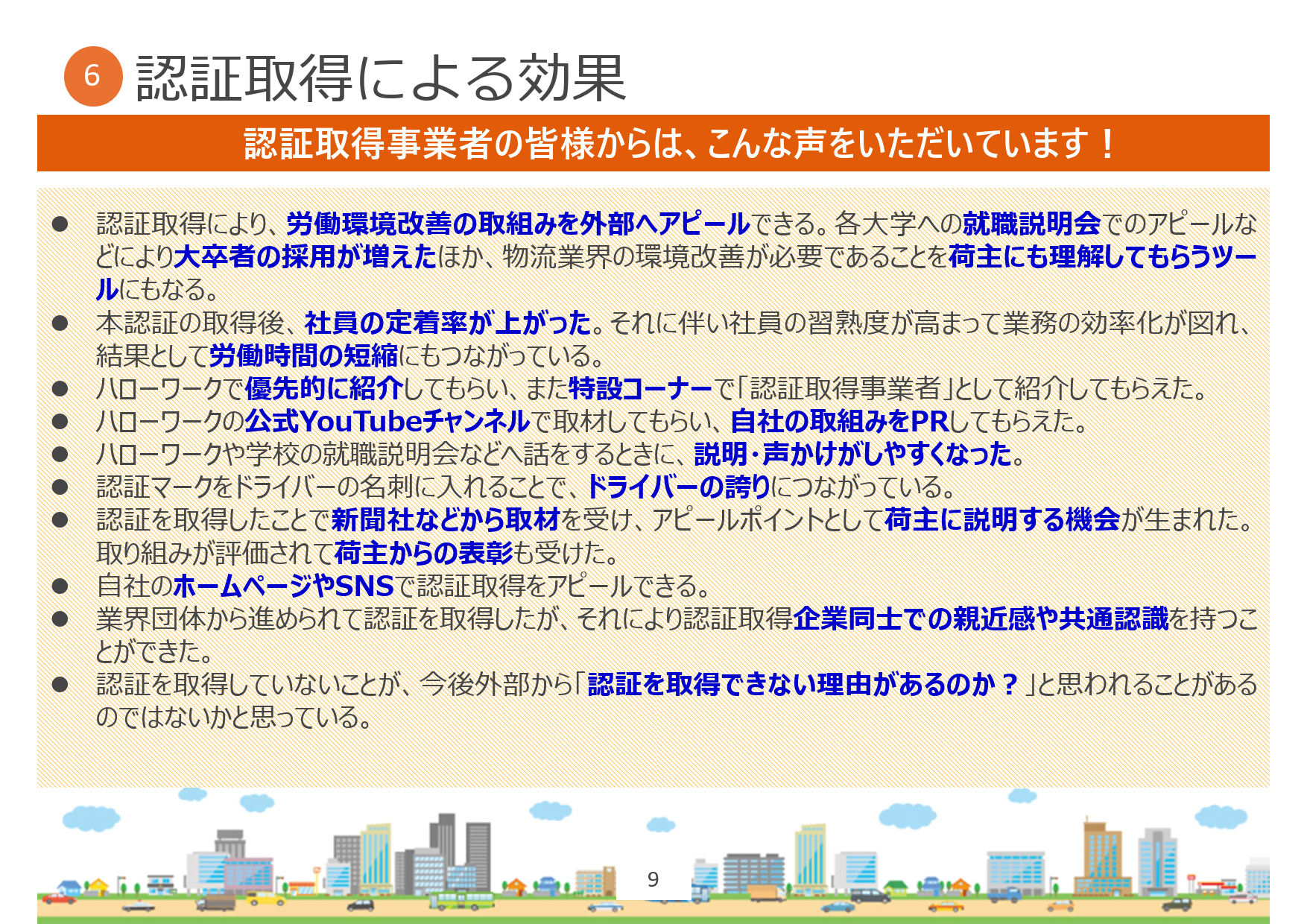 あわせて、認証を取得した事業者から寄せられている活用事例や効果の声を紹介し、採用活動や職場環境整備にどのように活かせるか、実務のイメージを持っていただく内容としました。